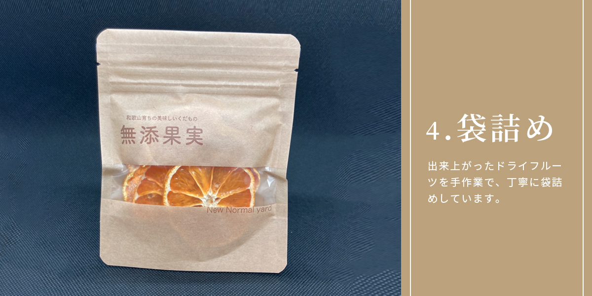 美しい海、山、川、天候に恵まれた和歌山県で育ったジューシーで色どり豊かな果物の甘み、香りをぎゅっと閉じ込めてドライフルーツを作りました。